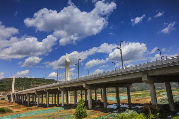 西興改擴建項目首座上跨式天橋順利完成路面鋪筑2025-06-30
